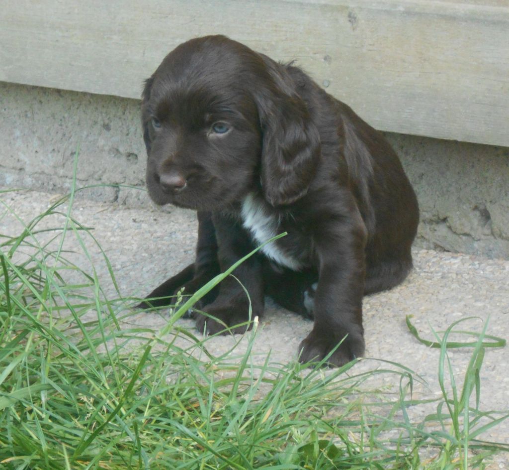 Ils passent actuellement leurs journées dehors, dans un grand parc en herbe, cailloux, dalles, terre et trouvent là de quoi découvrir et expérimenter; en compagnie de chiots d'une autre portée (BEAGLES) avec qui ils s'entendent bien, sous la surveillance des deux mères (et la notre). Ils rentrent dormir la nuit.