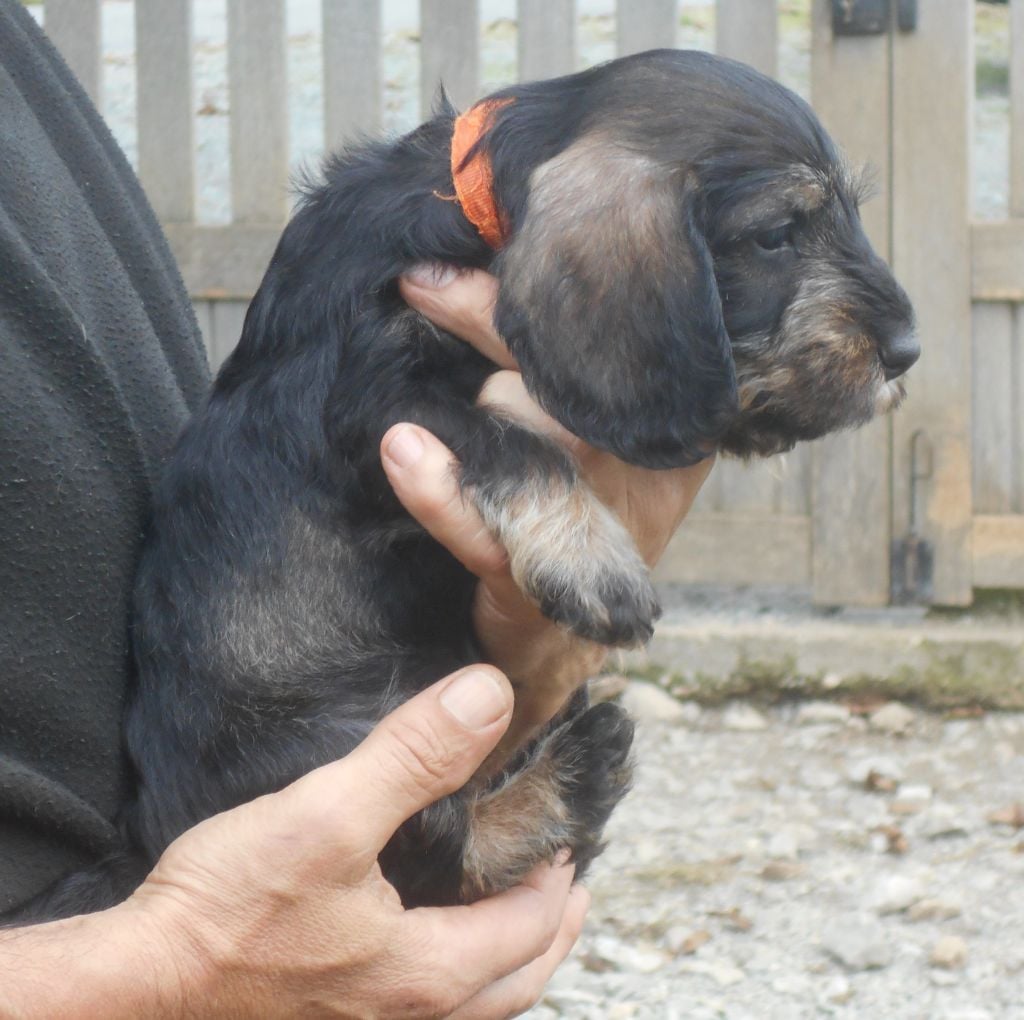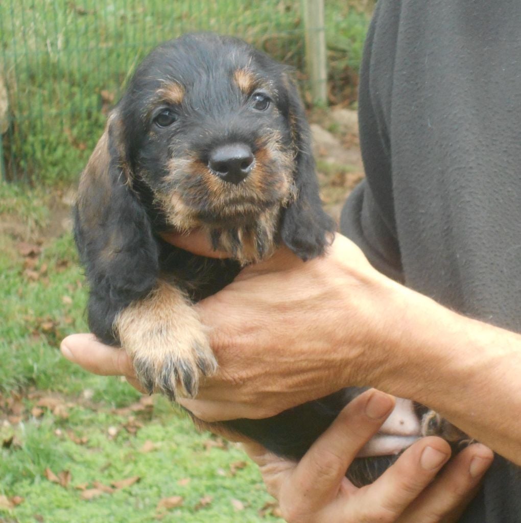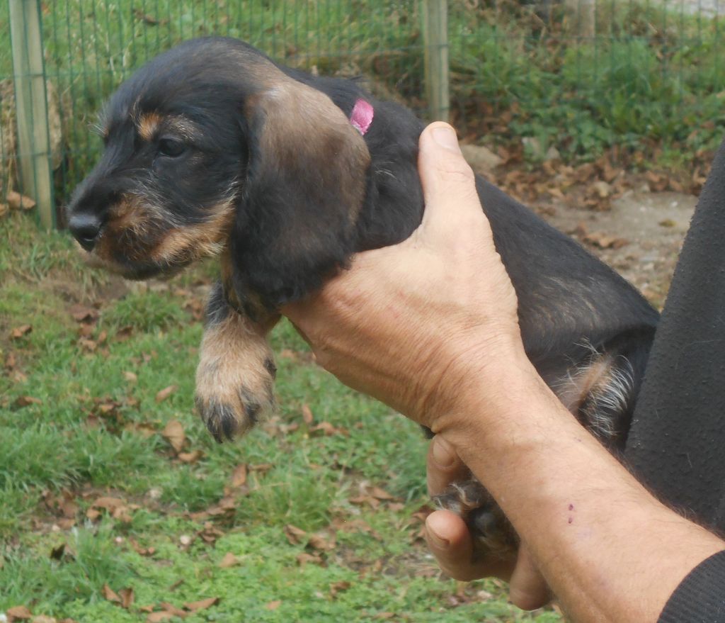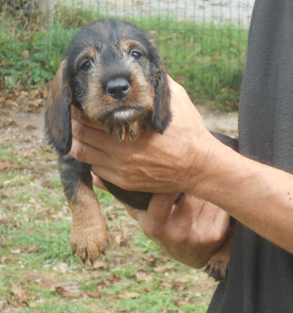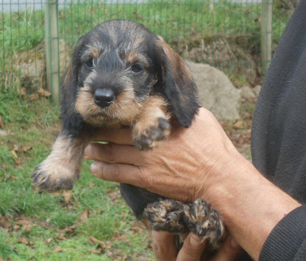 Ces petits ont tout ce qu'on attend d'un Teckel à poil dur: la couleur, le caractère, la morphologie et le poil bien sûr! C'est une belle portée de petits qui recherchent le contact humain, qui sont très gentils et très câlins.